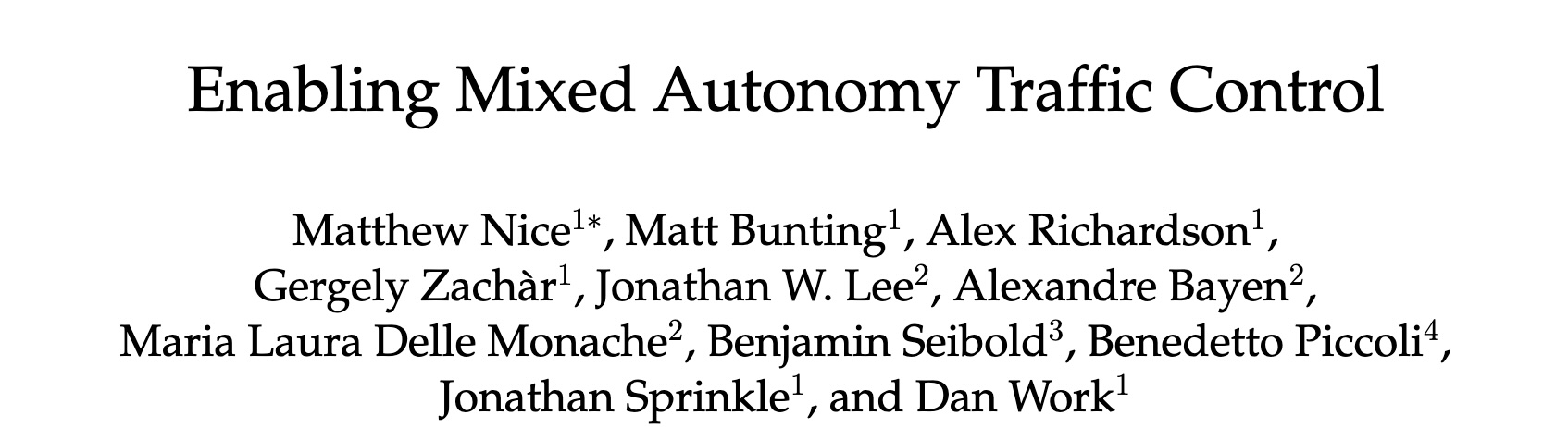 Matthew Nice, Matt Bunting, Alex Richardson, Gergely Zachar, Jonathan W Lee, Alexandre Bayen, Maria Laura Delle Monache, Benjamin Seibold, Benedetto Piccoli, Jonathan Sprinkle, Dan Work